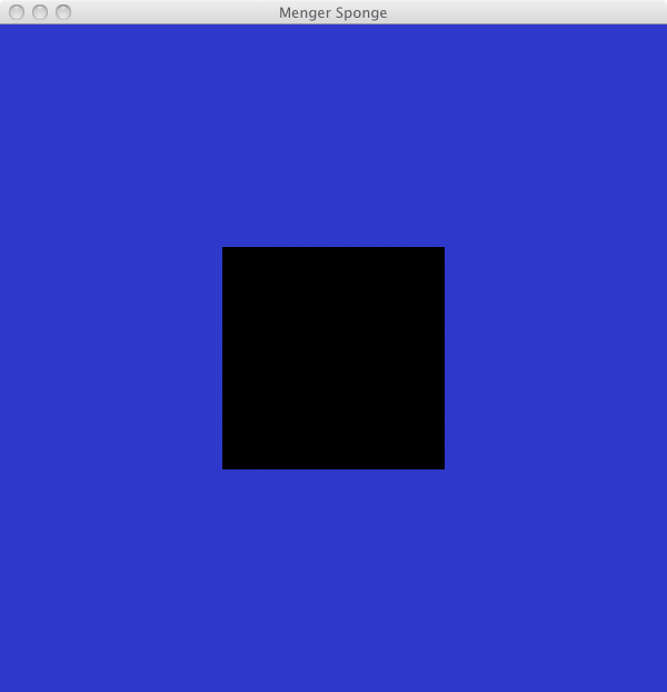 Normally, the Menger Sponge is a three-dimensional cuboid. This program works in a two-dimensional space, so it only shows one side of the sponge.